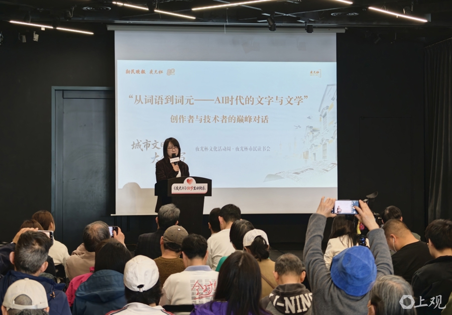 上午的首场活动在位于上海中心的朵云书院旗舰店举行,创作者与技术者进行了一场巅峰对话,在文学与科技的碰撞中,探讨“AI时代的文字与文学”;今天第二场活动于下午在同一地点举行,新大众文艺写作者与夜光杯·左联·青年写作计划学子对谈“文字如何从生活中生长出来”;今晚在上图东馆将开启第三场活动——“从剧场回望经典”全民阅读特别场。