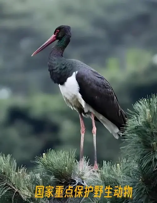 在清晨的薄雾中,一道黑白相间的身影悄然立于溪边,它修长的双腿稳稳立在水中,鲜艳的红喙如镊子般精准切入水面,旋即衔起一尾银光闪闪的小鱼。这就是黑鹳,一种将优雅与神秘完美融合的大型涉禽。