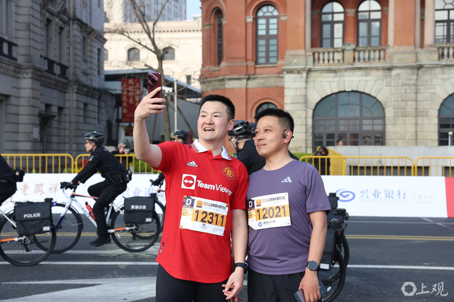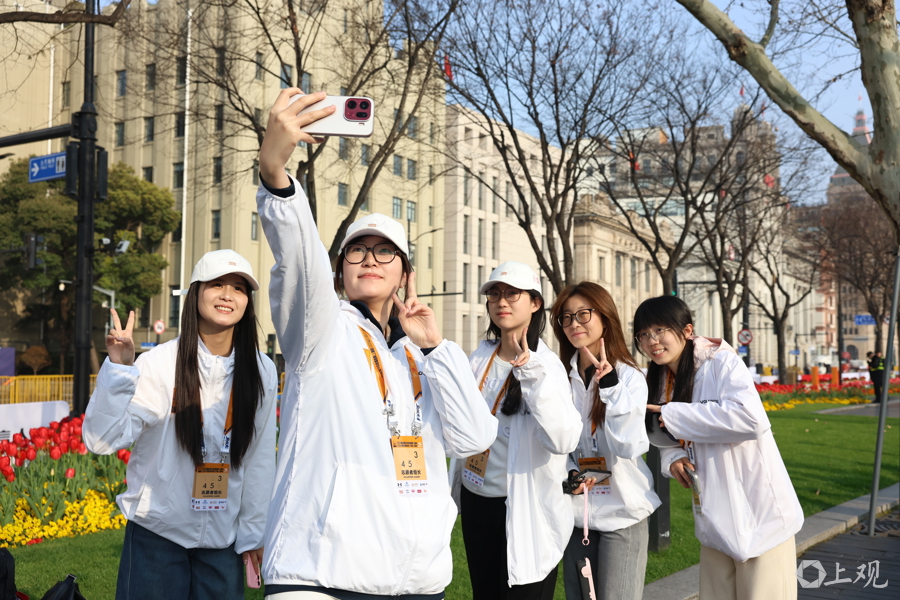 以赛结缘,选手和志愿者在外滩留下美好瞬间。