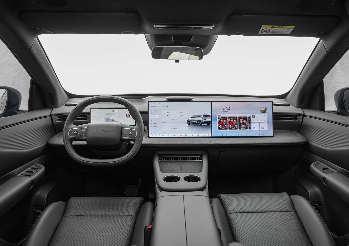 再来看车尾部分,车尾设计与前脸呼应,贯穿式尾灯组内置2064颗OLED发光单位,支持25种灯语模式,包括场景、打招呼、节日等,可通过车机自定义设置,彰显车主个性。尾灯中央隐藏的“NISSAN”品牌LOGO,在点亮时会同步亮起,进一步提升了辨识度。尾部下包围采用简洁的线条设计,与前脸的熏黑元素相呼应,整体造型沉稳大气。